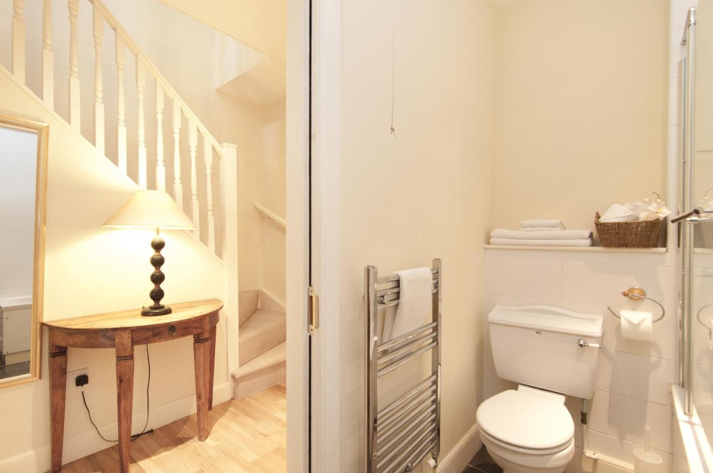 Two-Bedroom Apartment. A ground-floor apartment featuring an open plan living room, a fully equipped kitchen with breakfast bar, and a utility room with washing machine and tumble dryer. A large bathroom with free toiletries, a smart, flat-screen TV, and free Wi-Fi are also included.within the original bell tower, this apartment boasts original features such as arched windows. ;